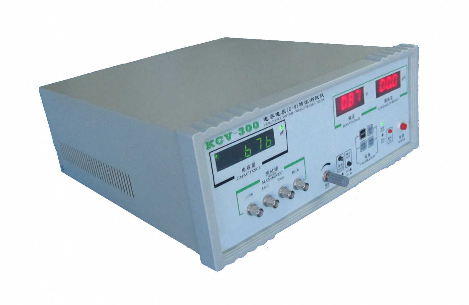 KCV-300型电容电压(C-V)特性测试仪是测试频率为1MHz的数字式电容测试仪器。专用于测量半导体器件PN结势垒在不同偏压下的电容量,也可测试其它电容。