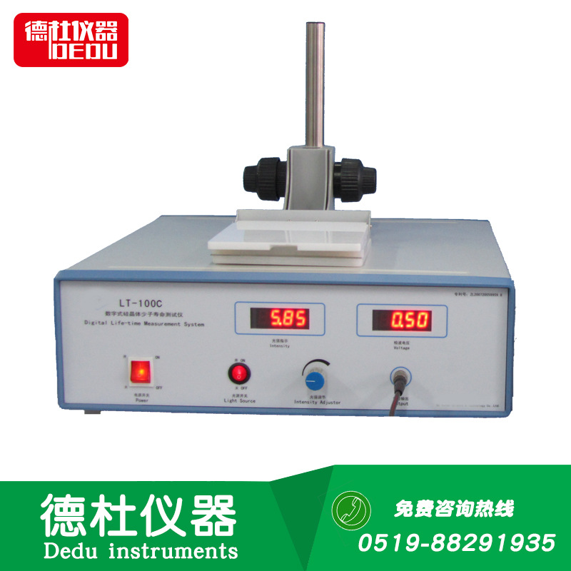 LT-100C型寿命仪配有两种光源电极台,一种波长为1.07μm,适合于测量硅单晶块或棒的体寿命;另一种波长为0.904~0.905μm,适合于测量切割或研磨太阳能硅片的相对寿命,与微波反射法测量条件相近,因此测量值也较接近。