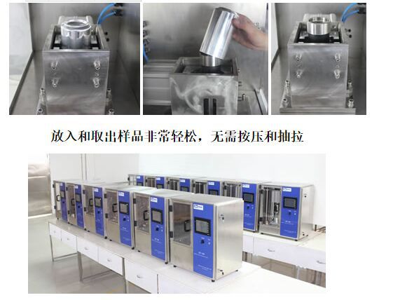 直接将被测样品放入测量夹具中,无需按压样品,样罐的夹紧和密封由气缸和自动密封装置自动执行,只需按下测试键,就能自动得到罐底耐压值。