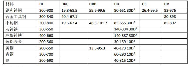 7. 基于里氏硬度,可转换为洛氏、布氏,维氏,肖式等硬度制式