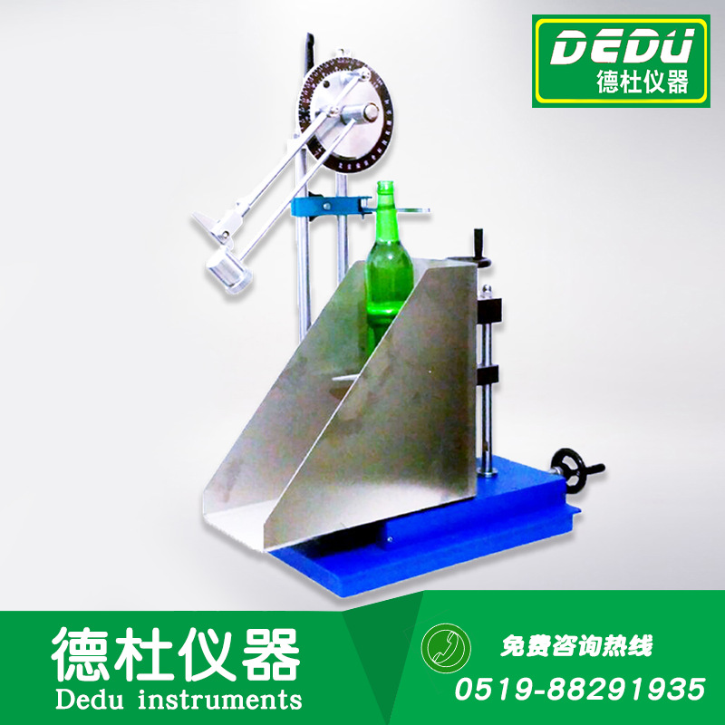 DRK512 玻璃瓶抗冲击试验仪 适用于测定各种玻璃瓶罐的抗冲击强度。仪器上标有两组标尺读数:冲击能量值(0~2.90N·M)和摆杆偏转角度值(0~180°)。仪器的构造及使用满足《GB_T 6552-2015玻璃瓶抗机械冲击试验方法》的要求。满足国标规定的通过性和递增性试验。