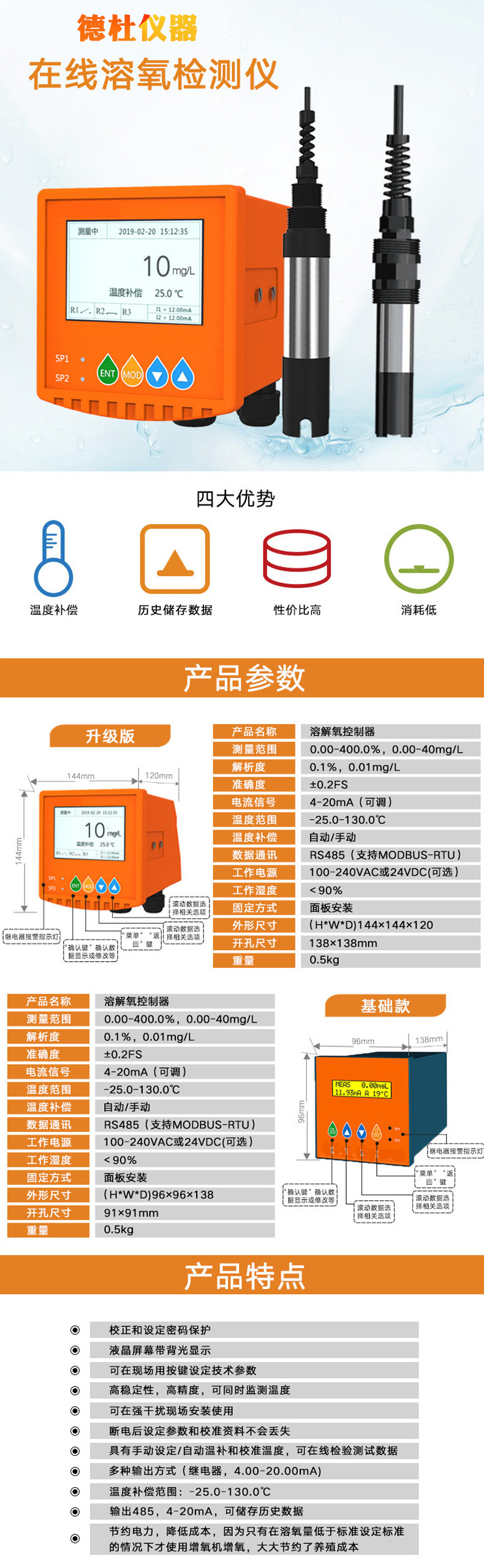 DT0800污水溶氧仪在线溶解氧检测仪 水产养殖控制溶解氧传感器