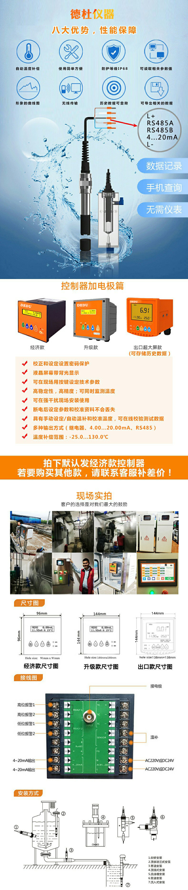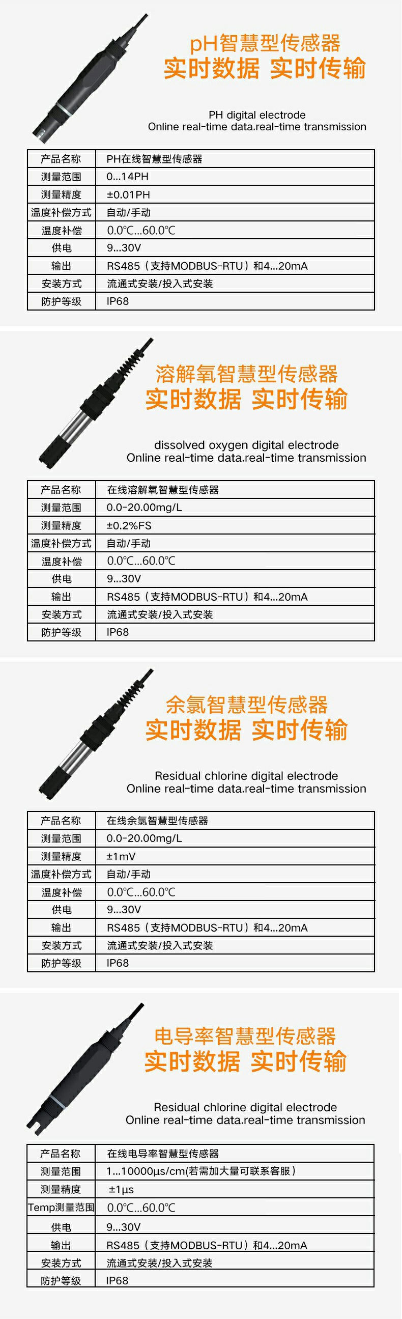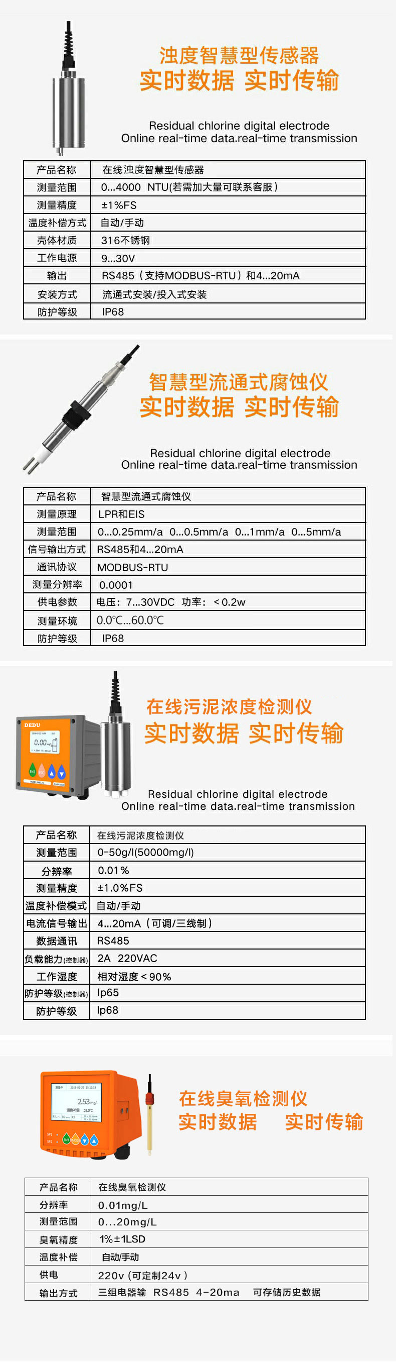 PHORP溶解氧传感器 余氯浊度污泥浓度计DT1000 腐蚀率水中臭氧 EC检测仪485