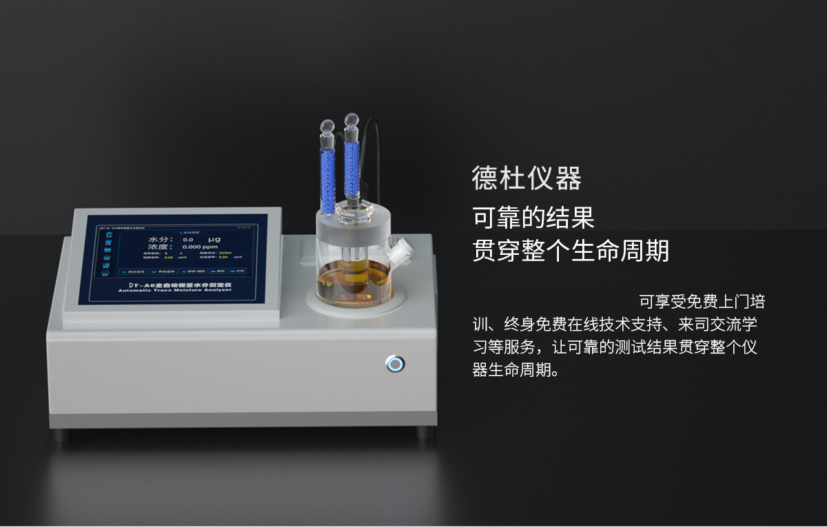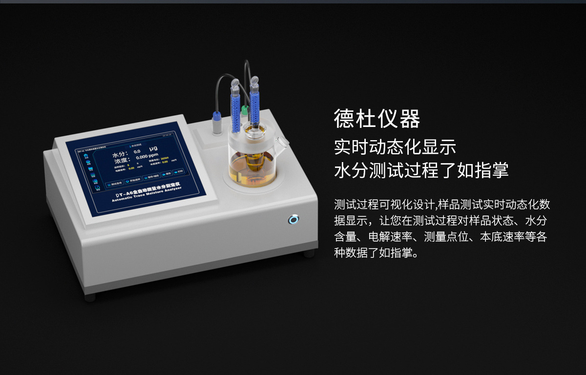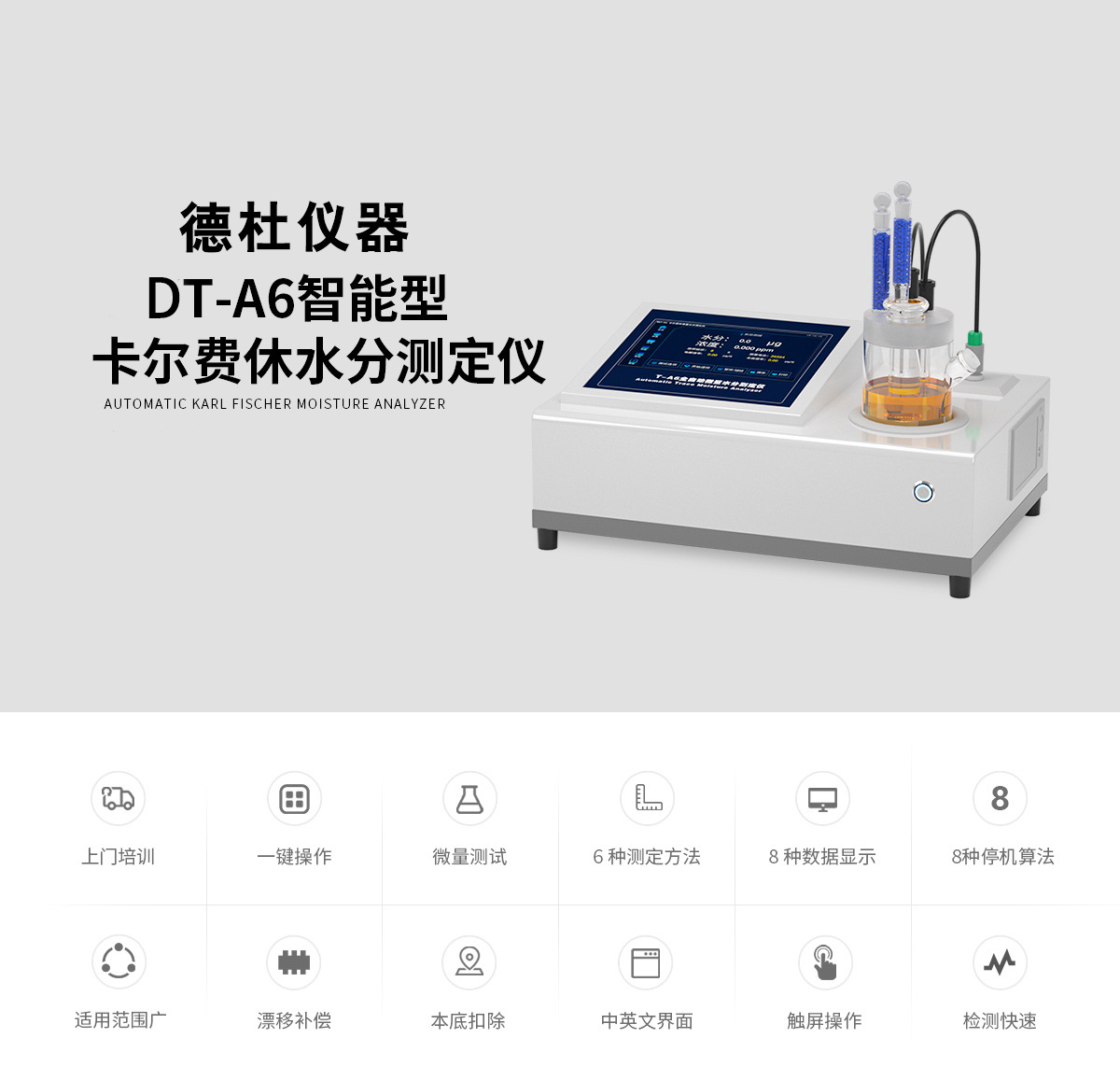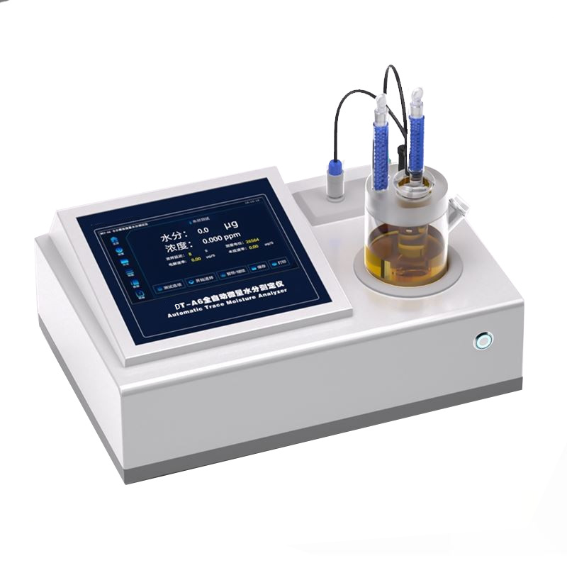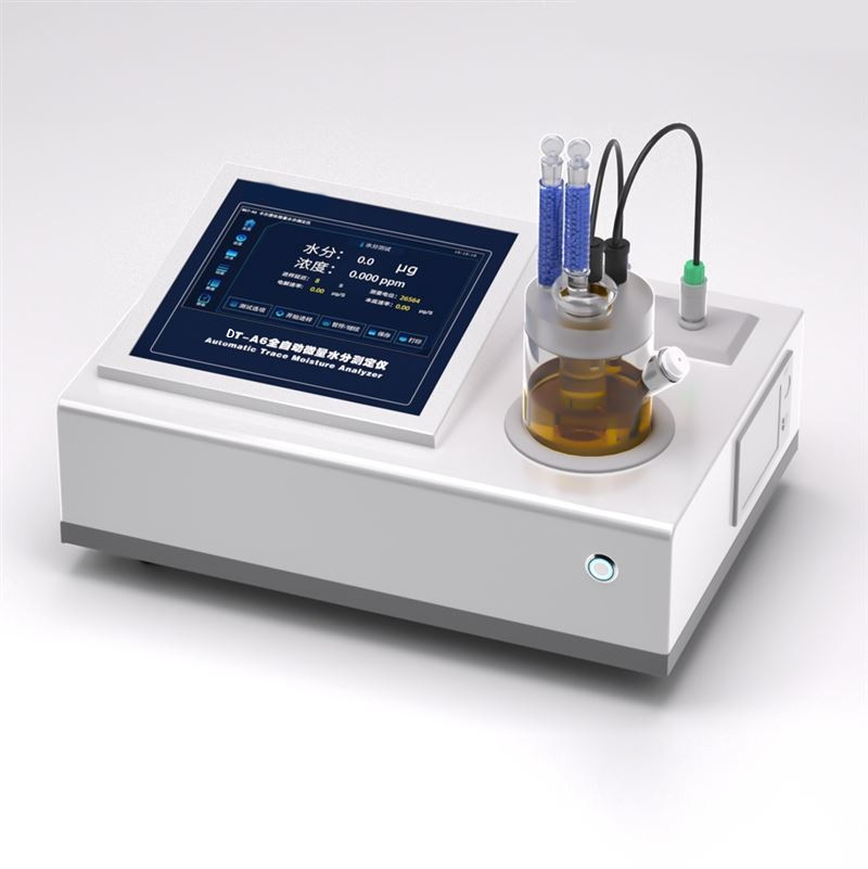 DT-A6型全自动卡尔费休水分测定仪集成了多项的先进生产技术,测定原理为测水经典方法【卡尔—费休库仑法】,测定范围低至0.0001%(1ppm),DT-A6型全自动卡尔费休水分测定仪可在60秒内快速测定出液体、固体、气体中的水分含量,广泛应用在化工、石油、电力、科研、铁路等行业。在化工、石油、电力、科研、铁路等行业。