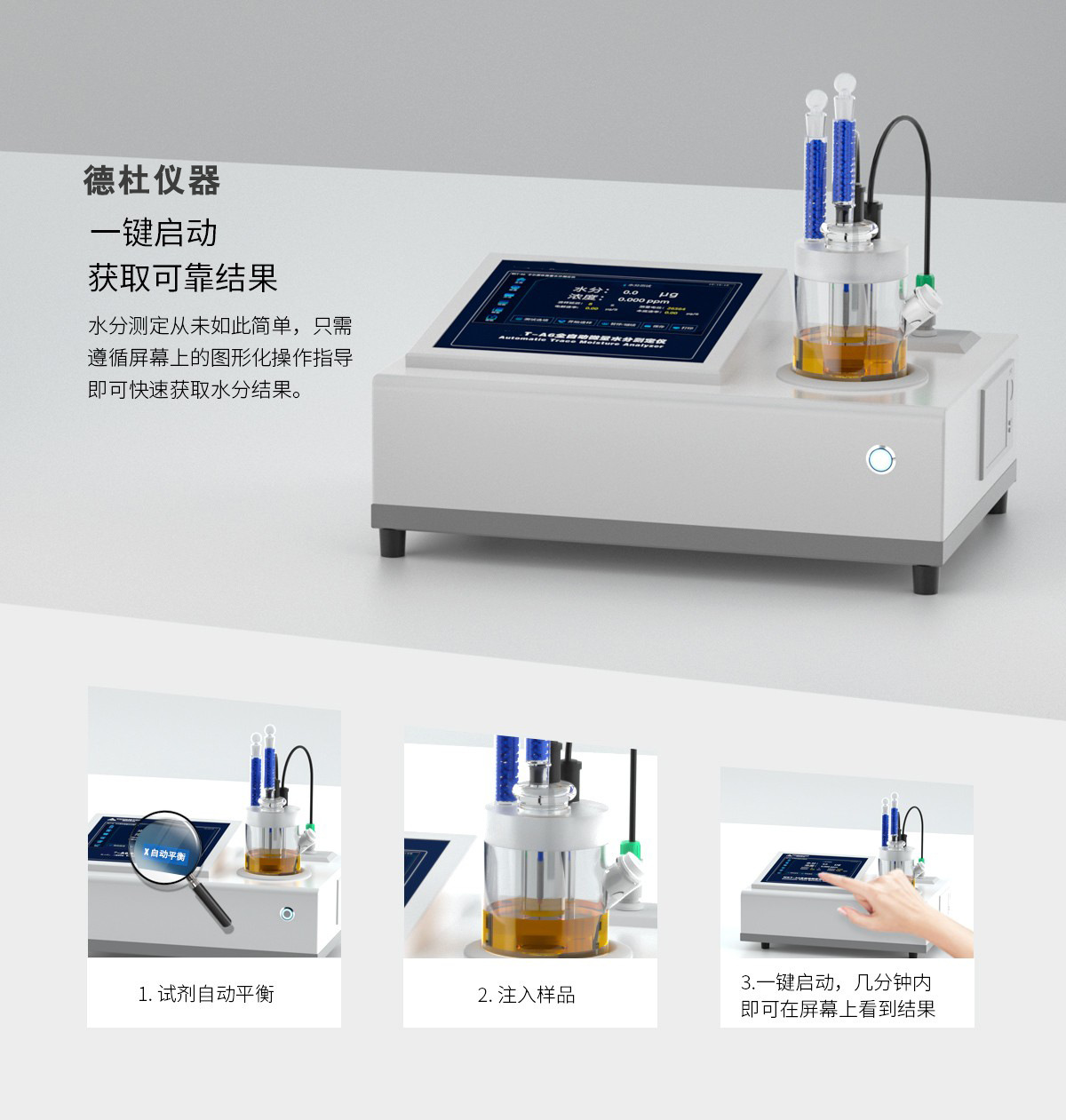 | 液体 | 化工行业:醇类、醚类、酸类、苯类、酚类、有机溶剂等适用于卡尔费休法测定的产品。 石油电力行业:绝缘油、变压器油等油品。 制药行业:药原料等。 农药行业:乳化剂等。 其他行业:锂电池电解液等。 |