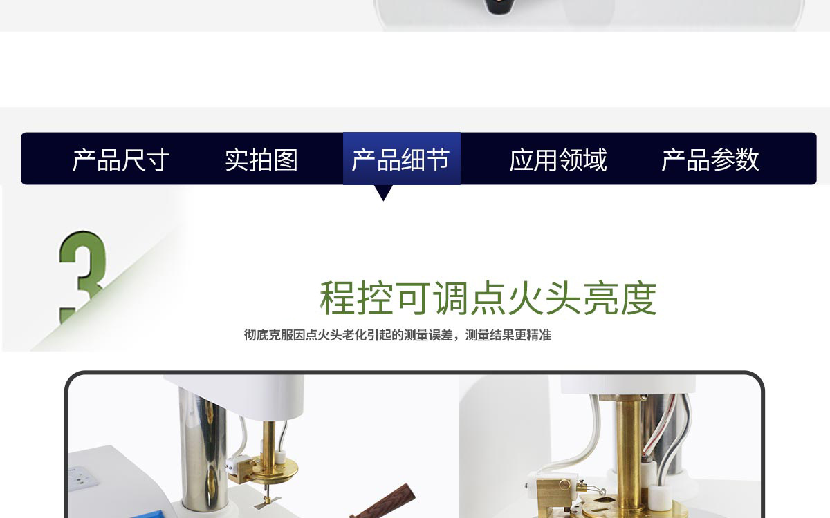 1、*程控可调点火tou亮度,*克服因点火tou老化引起的测量误差,测量结果更jing准;
