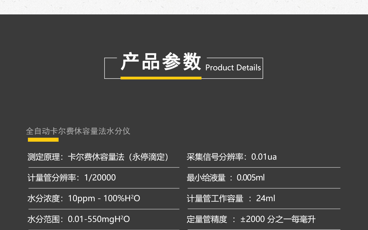 | 水分滴定线性相关系数 | ≥0.999 |