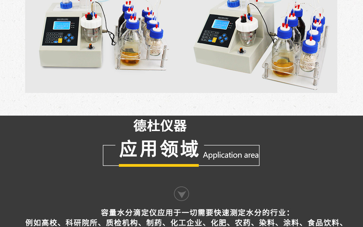 | 液体 | 化工行业:醇类、醚类、酸类、苯类、酚类、有机溶剂等适用于卡尔费休法测定的产品。 石油电力行业:绝缘油、变压器油等油品。 制药行业:药原料等。 农药行业:乳化剂等。 其他行业:锂电池电解液等。
