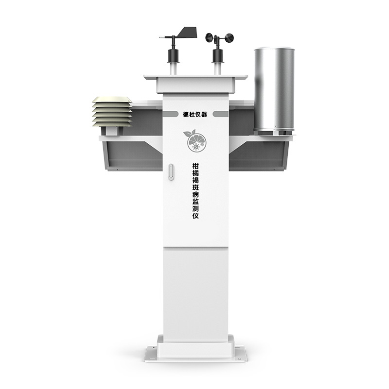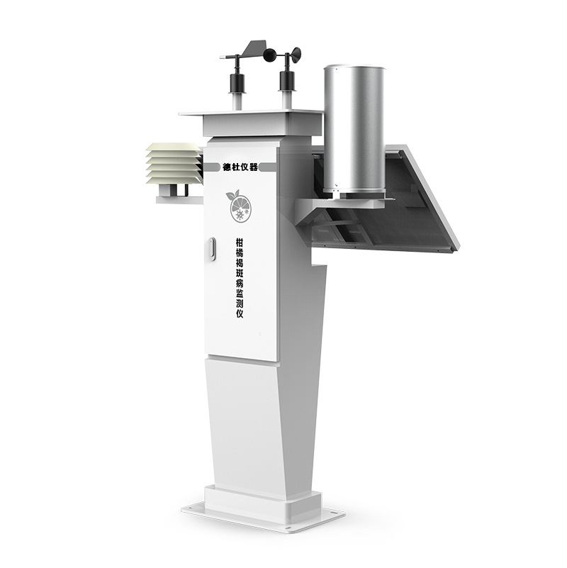柑橘褐斑病监测仪通过对风速、风向、雨量、空气温度、空气湿度、大气压等要素进行全天候现场监测。并通过4G无线传输至平台存储、分析。系统通过内置的柑橘褐斑病数据模型进行自动分析计算。可广泛应用于农业生产中。