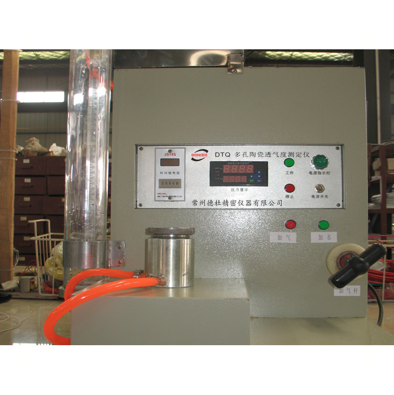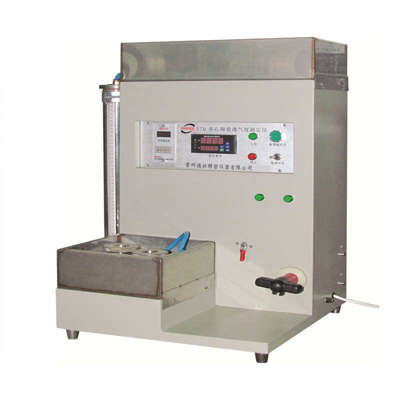 DTQ多孔陶瓷透气度测试仪满足GB1968多孔陶瓷制品透气度的测定,多孔陶瓷制品的透气度是指室温下,在压力差为1毫米水柱时1小时内以层流状态通过厚为1厘米,面积为1米2的多孔陶瓷制品的空气立方米数。