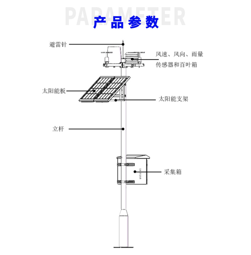 无线气象环境监测站,用于对风速、风向、雨量、空气温度、空气湿度、光照强度、土壤温度、土壤湿度、蒸发量、大气压力等气象要素进行全天候现场监测。可以通过专ye配套的数据采集通讯线与计算机进行连接,将数据传输到气象计算机气象数据库中,用于统计分析和处理。主要应用于气象、农业、地质、环境等方面,并适合于野外科研试验应用。