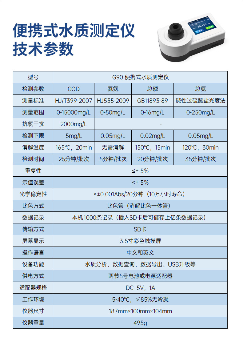 便携式COD检测仪氨氮总磷总氮 多参数水质分析 污水快速消解测定仪