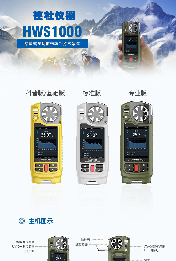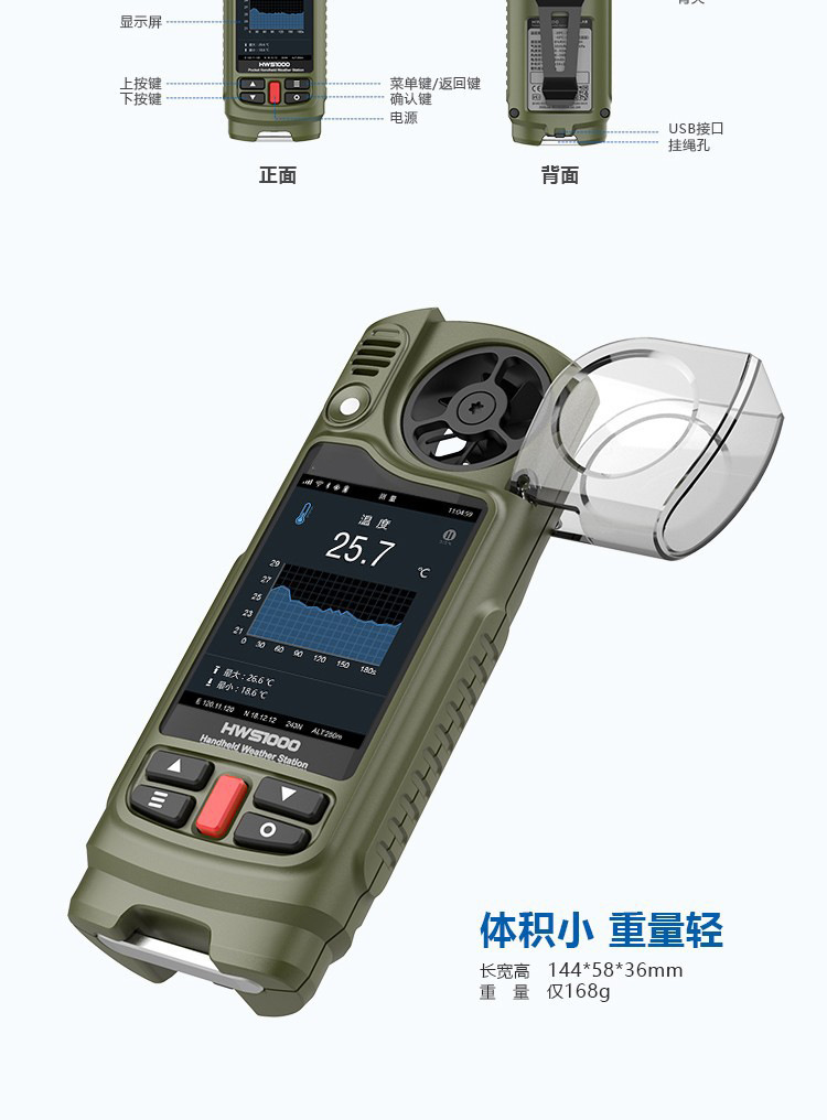 HWS1000袖珍型手持气象仪 多功能袖珍手持气象仪