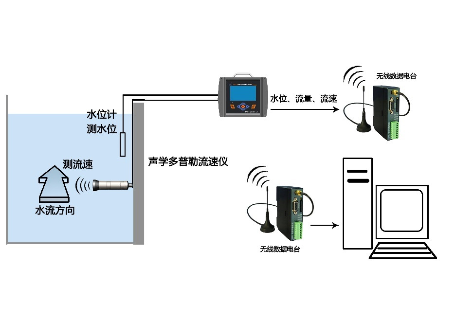 7、实时在线流速、流量和水位测量;
