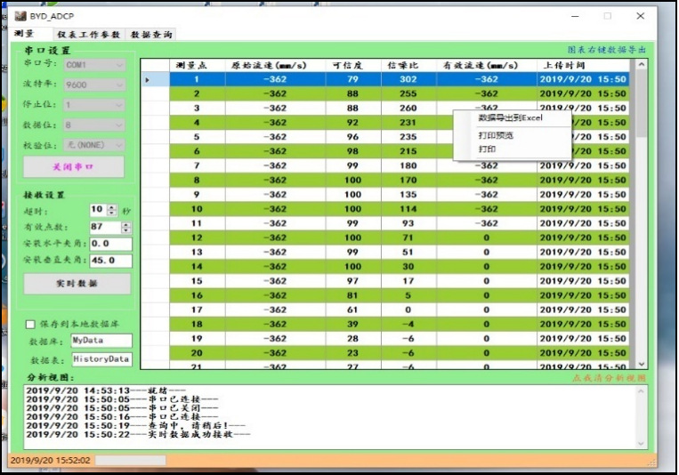 4、可存储包括测量点,原始数据,可信度,信噪比,有效数据,上传时间等数据。