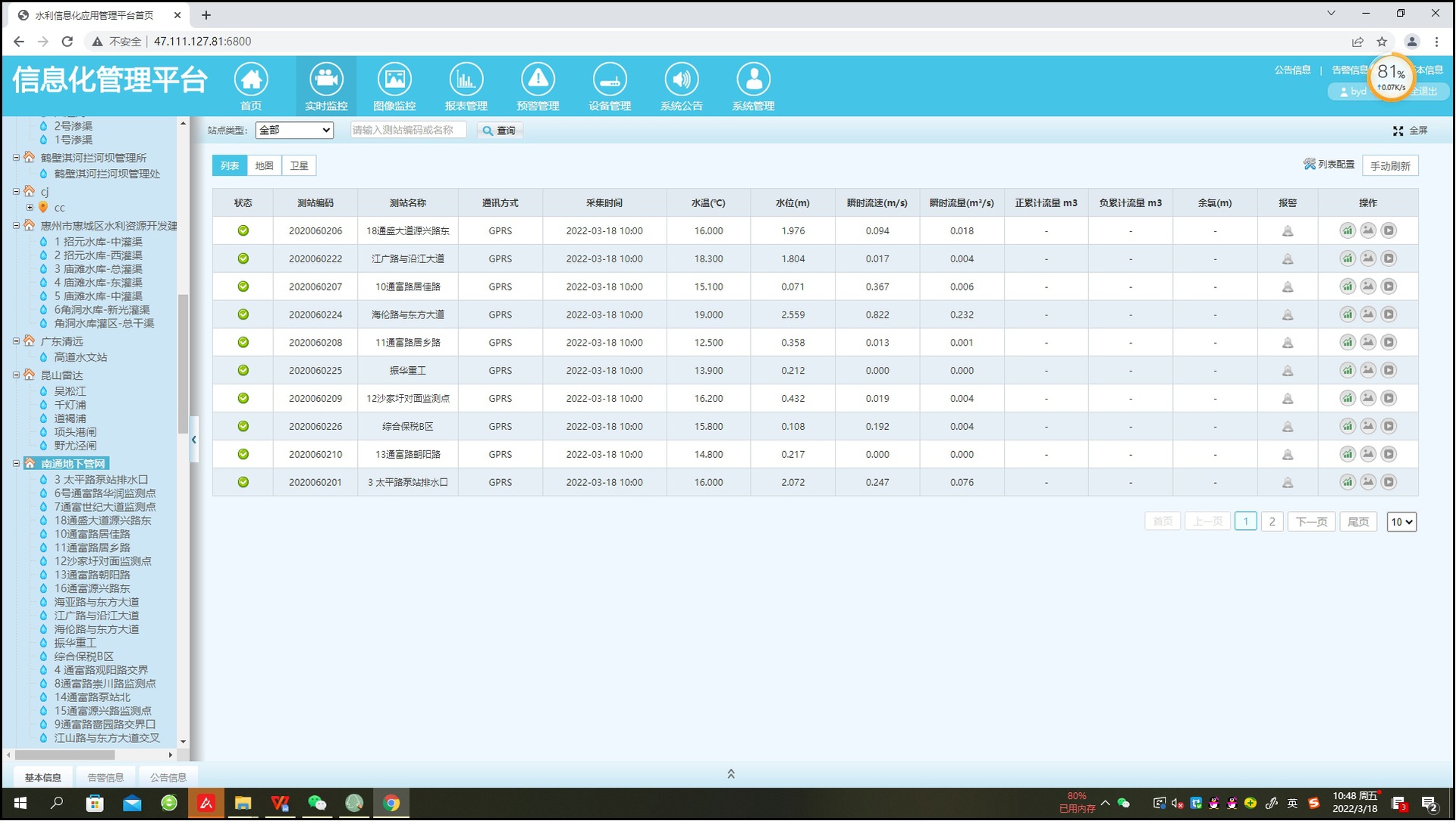 水位,流速,瞬时流量,累计流量