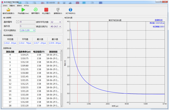 (5)读数方式:可选配载流子寿命专用测试软件系统或专用数字示波器读数,软件系统测试操作简单,点击“测量”即可,自动保存数据及相应测试点衰减波形到数据库,可进行查询历史数据和导出历史数据等操作。