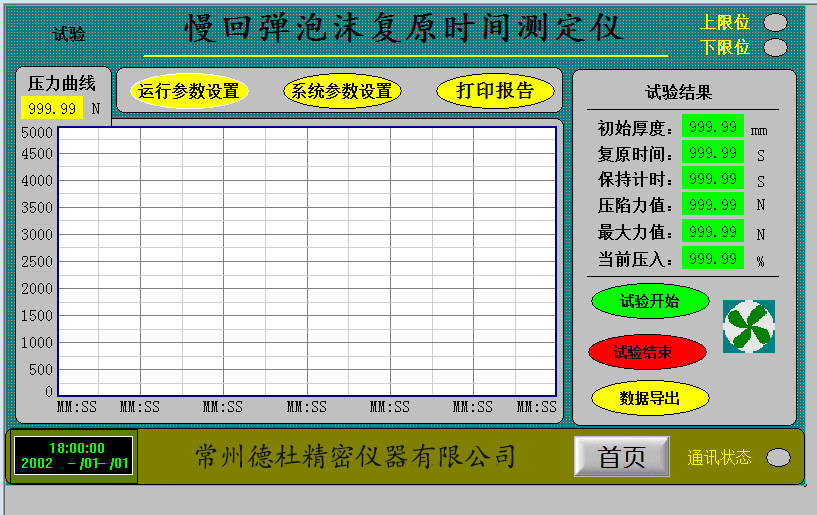3、时间记录:压头返回运动开始的同时,启动秒表,当试样恢复到对压头重新产生4.5N的预加负荷,停止计时。