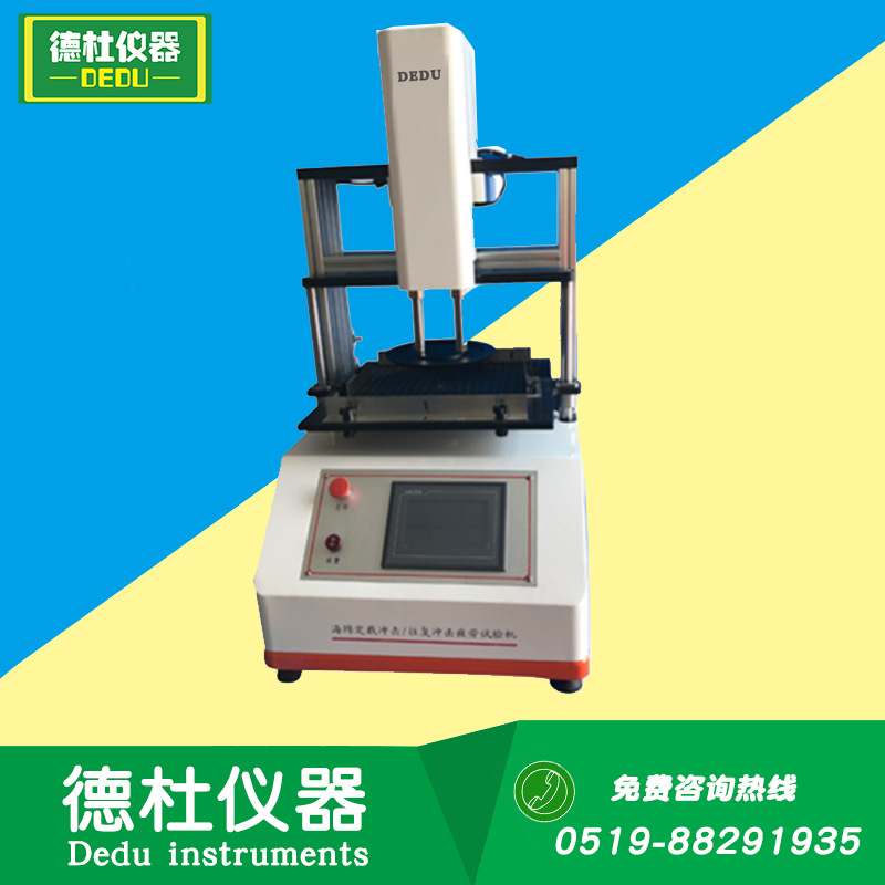 主要用于泡沫聚合材料的往复冲击压缩疲劳试验,测定试样的厚度减少值和硬度降低值(残余变形率),并由此可以了解材料的动态疲劳特性。