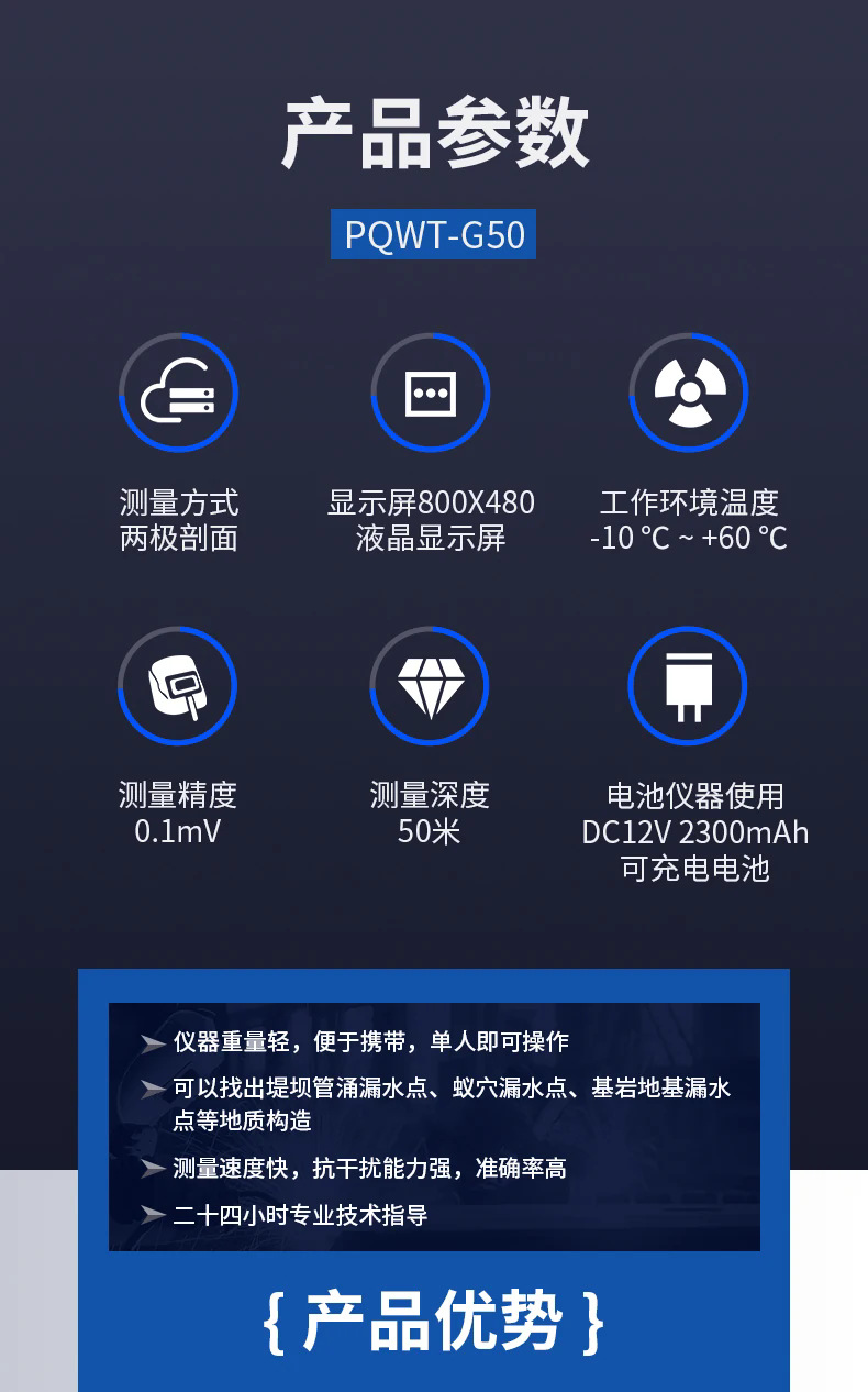 堤坝管涌检测仪PQWT-G150漏水利防汛应急安全查蚁 穴空洞管涌仪