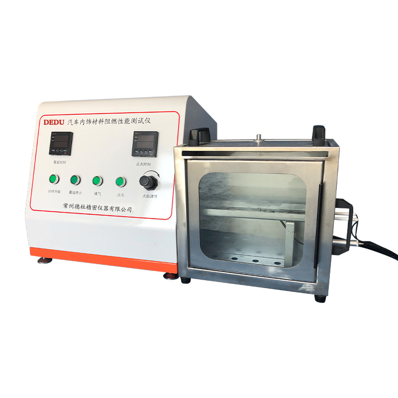 适用标准: GB 8410-2006 《汽车内饰材料的燃烧特性》 GB/T 20953-2007《农机内饰材料燃烧特性测定》 TL1010、GM6090M、DIN7520、GM9070P、FMVSS 302、JIS D 1201 ;JASO M403 ;ISO 3795 ;ASTM 5132