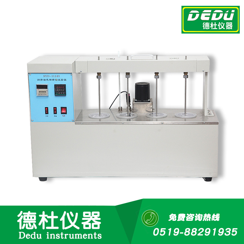 SYD-11143润滑油液相锈蚀试验器是根据中华人民共和guo标准GB/T 11143《加抑制矿物油在水存在下防锈性能试验法》所规定的要求设计制造的。适用于按GB/T 11143标准提出的试验法,评定加抑制剂的矿物油,特别是汽轮机油在同水混合时对铁部件的防锈能力。也适用于评定其它油品,如液压油、循环油以及比水重的液体对铁部件的防锈能力。