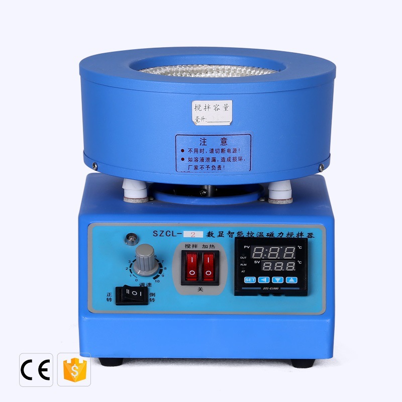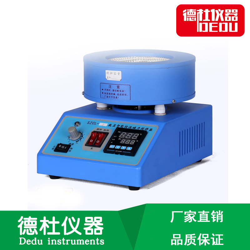 ?采用强磁钕铁硼磁钢,耐高温,电机采用日本产稳速直流电机,转速稳,噪音小,可连续工作,加热部分采用内热式电热套加热,一机两用,加热快、无明火、安全可靠,温度控制分调压电接点温度计控温、数显智能控温二种方式。(注:自行配置电接点温度计。)