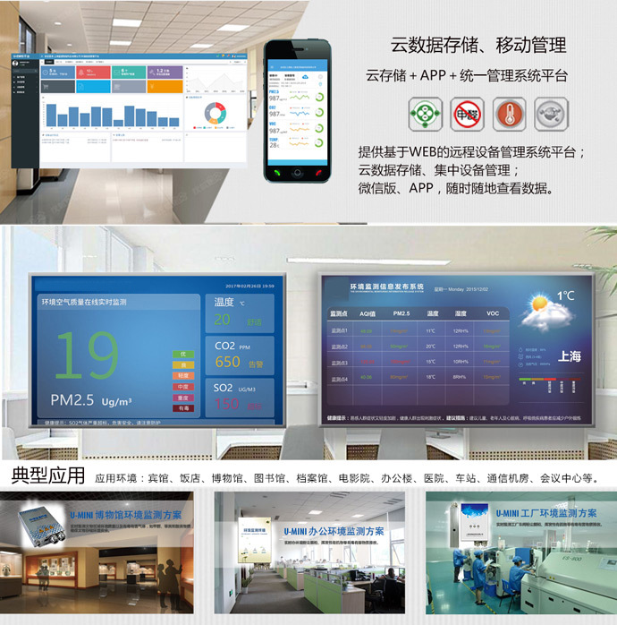 室内多参数环境监测设备U-MINI100是一款小型多功能室内环境监测终端,本产品采用先进的集成传感器技术,通过内置微处理器、检测器和内部固化的运算程序,自动完成对室内环境空气的采集和计算分析。