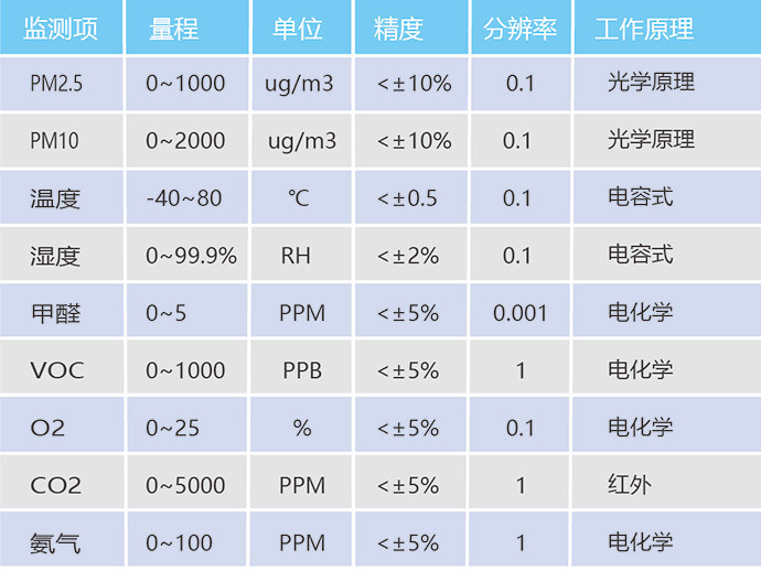 室内多参数环境监测设备U-MINI100采用模块化设计,可选配安装PM2.5、PM10、氨气、二氧化碳、jia醛、氧气、温湿度等多种监测项。