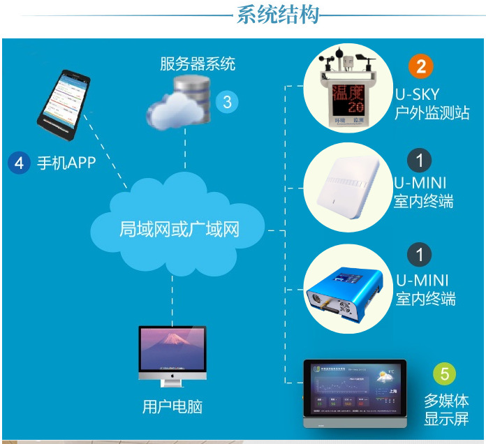 2、监测数据展示。产品可选配外接各类多媒体显示屏,实现监测数据实时展示发布。