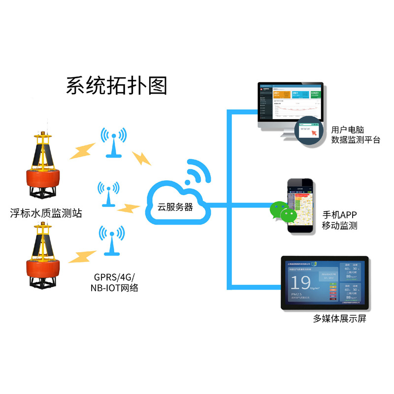 UWF-100 为小型多参数浮标式水质在线监测站系统,由各类水质在线监测分析仪(也可搭载大气环境监测模块)、数据采集和传输系统、后台数据处理系统及信息监控管理平台等部分组成。