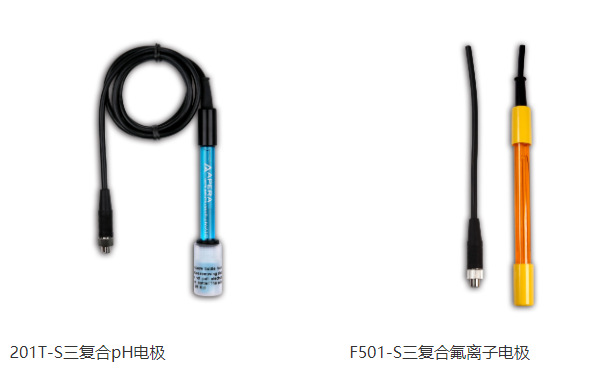 双参数仪表,配置 pH 电极和氟离子电极,仪器会自动识别电极,使用方便。