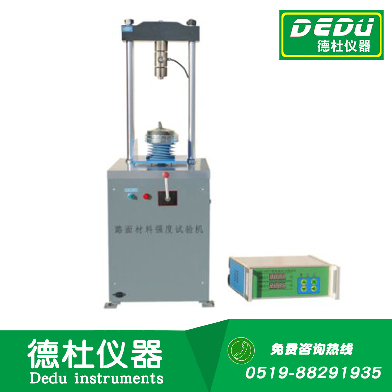 新型一体式路面材料强度试验机是在原路面材料强度试验仪上进行改进而设计的普及型试验机。采用了高精度数字显示压力表代替测力环,读数更加准确直观。配合不同的实验夹具以及位移测量装置,可以完成一些常规的材料强度实验。