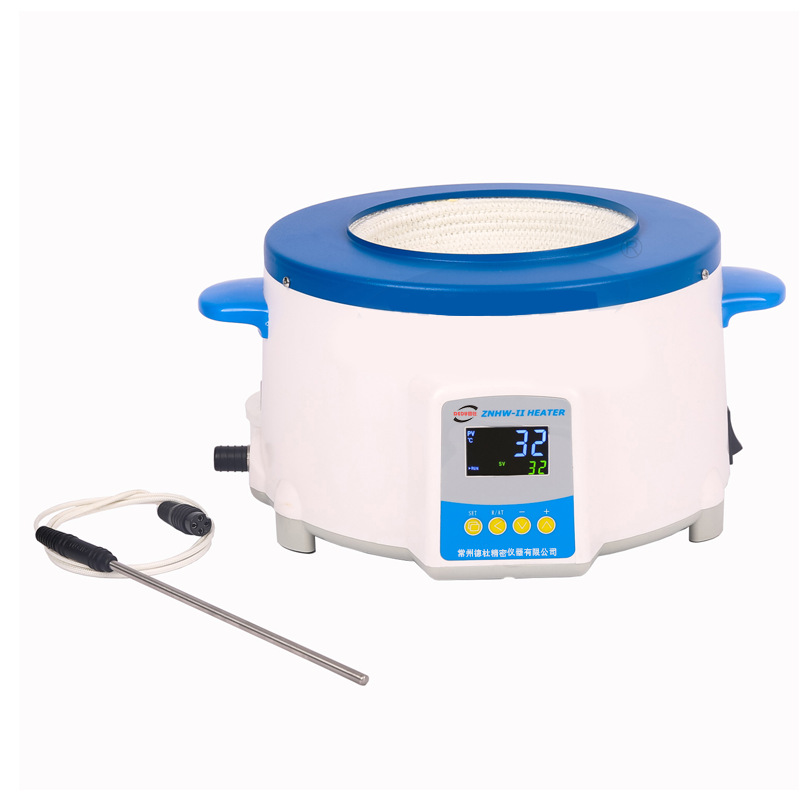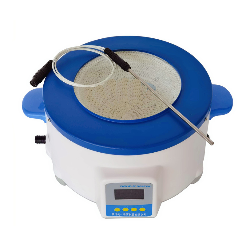 电热套是用无碱玻璃纤维作绝缘材料,将Cr20Ni80合金丝簧装置于其中,用硅酸铝棉经真空定型的半球形保温体保温,外壳一次性注塑成型,上盖采用静电喷塑工艺,由于采用球形加热,可使容器受热面积达到60%以上,控温采用计算机芯片做主控单元,采用多重数字滤波电路,模糊PID控制算法,自整定功能,具有测量精度高、冲温小、单键轻触操作,双屏显示,内、外热电偶测温,可控硅控制输出,~160-240V宽电压电源,并有断偶保护功能,具有升温快,温度高、操作简便、经久耐用的特点。是做jing确控温加热试验的最理想仪器。