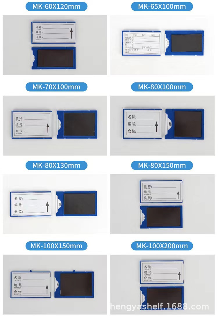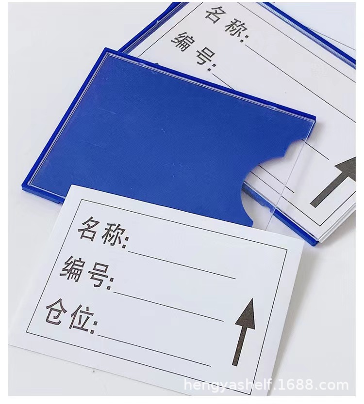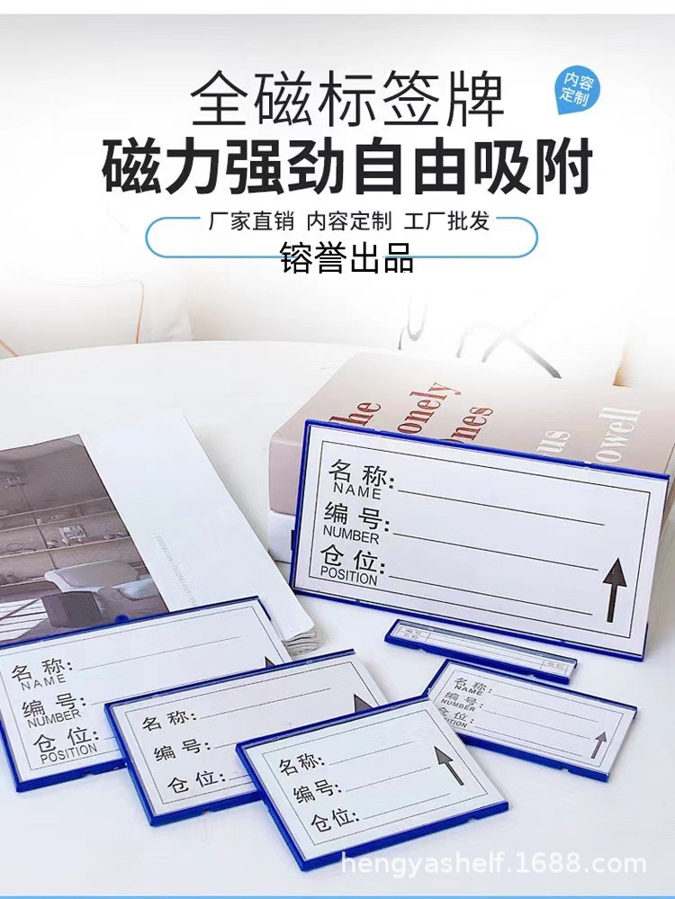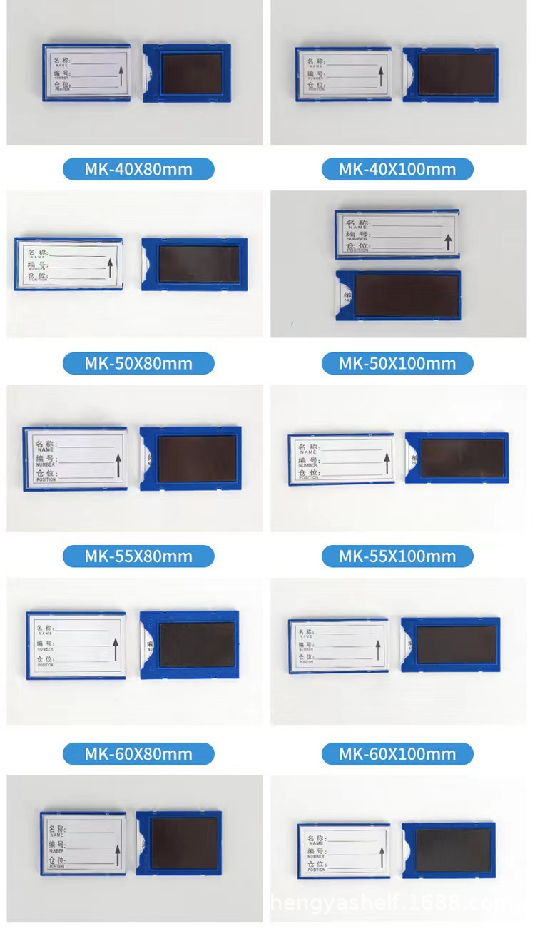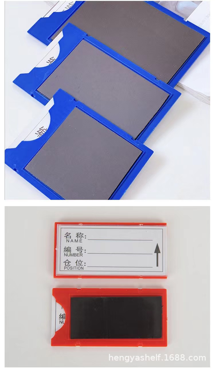 1、 普通型磁性标签正面插入资料卡片,可标识物品的名称、型号、规格和物料代码和数量等;