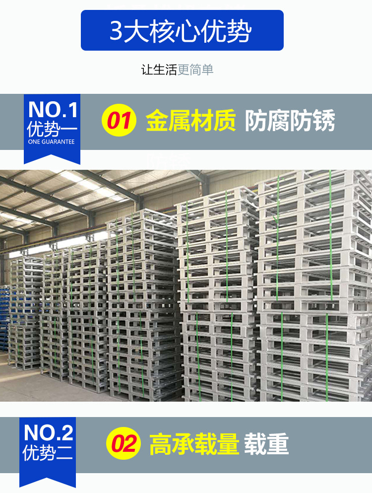 主要用于多用途的地面存储、货架存储及货物联运、周转等超轻金属托盘系列。集装、堆放、搬运和运输的放置作为单元负荷的水平平台装置。是现在工业重要的仓储与运输辅助设备之一。
