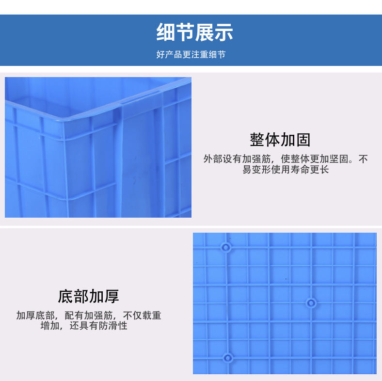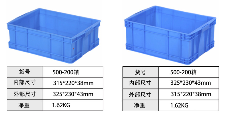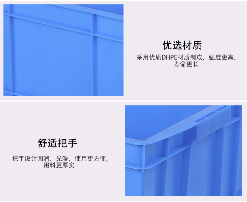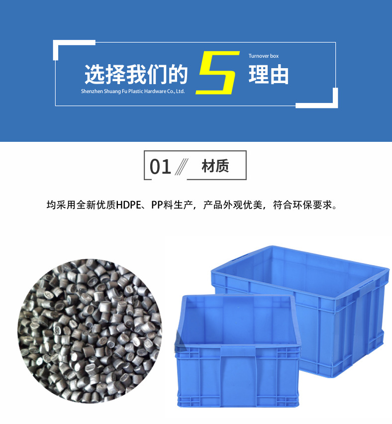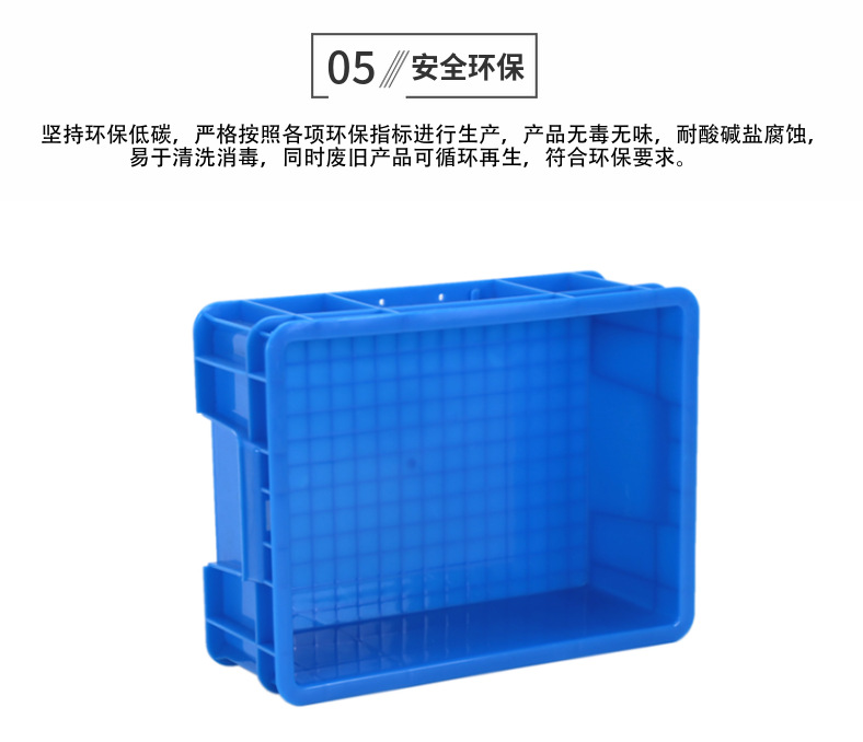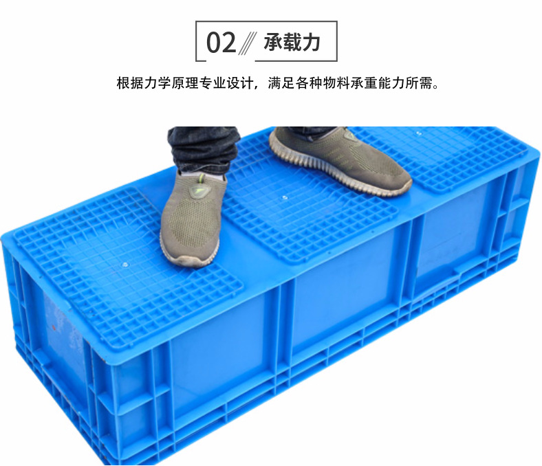 1、物流周转箱材质为共聚丙烯、聚乙烯合成,自重轻,使用寿命长。