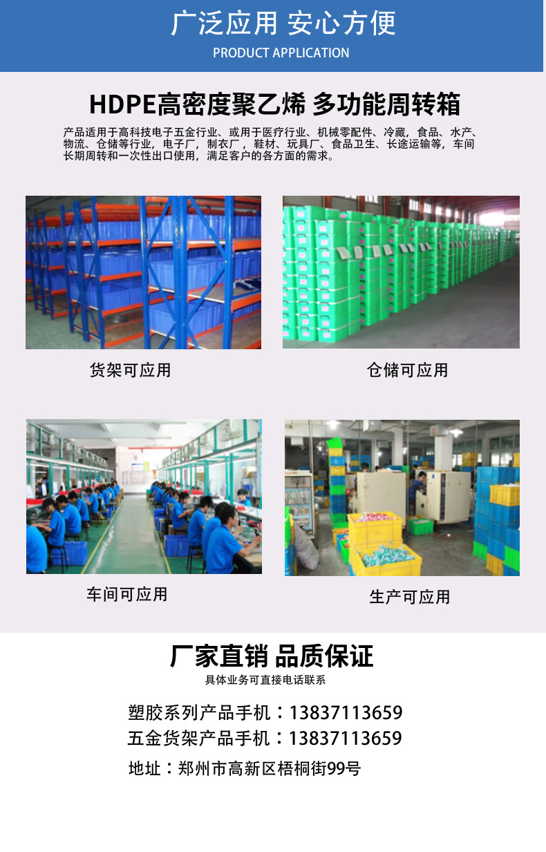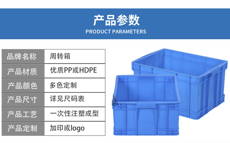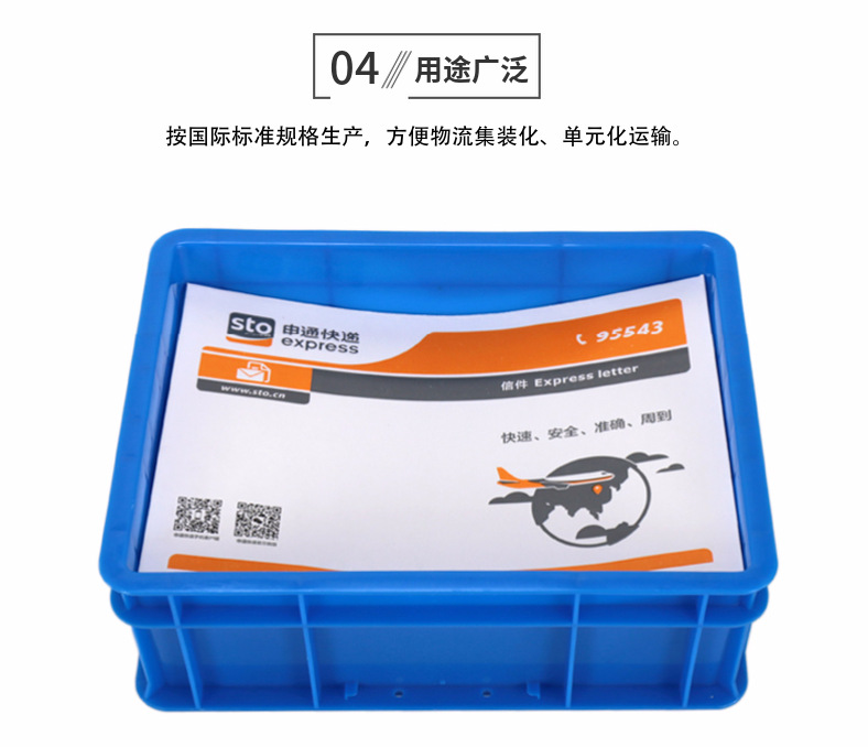物流周转箱简称为物流箱或周转箱,广泛用于机械、汽车、家电、轻工、电子等行业,能耐酸耐碱、耐油污,无味,可用于盛放食品等,清洁方便,零件周转便捷、堆放整齐,便于管理。适用于工厂物流中的运输、配送、储存、流通加工等环节。