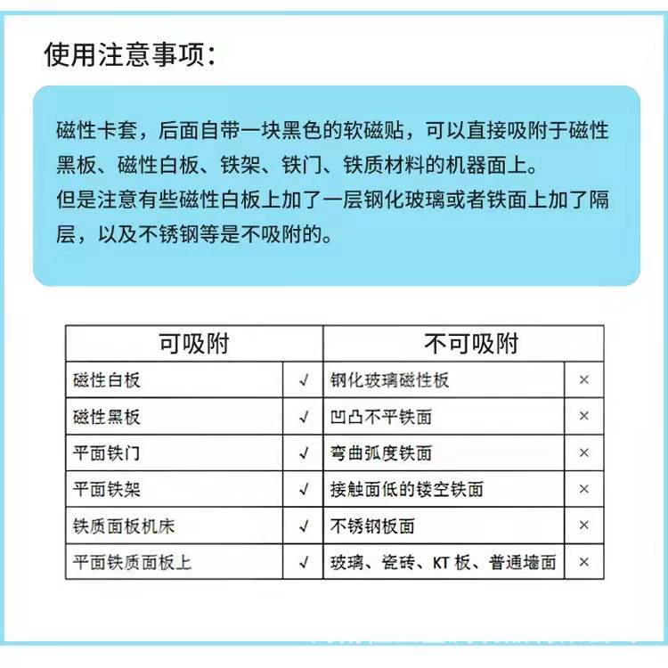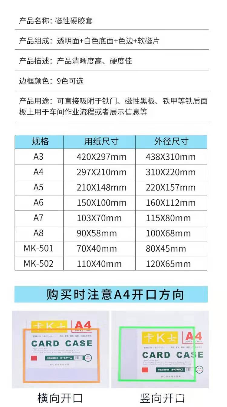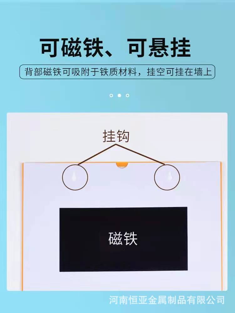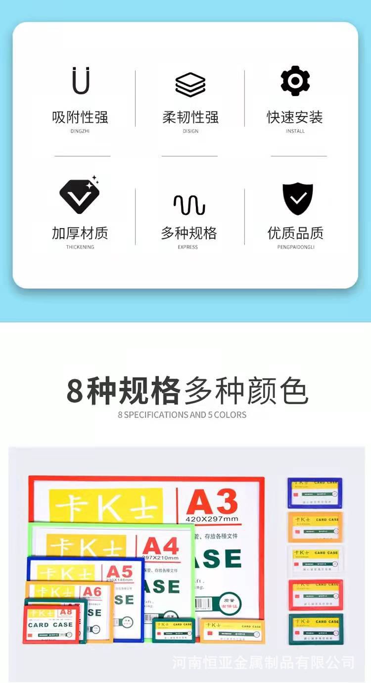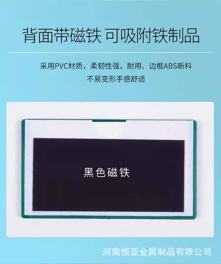 磁性标签是现代仓库管理中标签的一种,又叫磁性标牌、磁标签、材料卡、货位卡,由ABS工程塑料制成,是一种靠磁性吸附在文档架、书架、货架上标示该处物品信息的材料卡,其正面为物品信息标明面,背面是薄片方块关磁铁。常用于商场、文档室、图书馆、仓库等场所内。磁性标签按用途可分为普通型和计数器型两种。1、 普通型磁性标签正面插入资料卡片,可标识物品的名称、型号、规格和物料代码和数量等;2、计数器型磁性标签的上半部分是与普通型一样的配有标识卡片,不同的是其下半部分有数码拨盘可直接记录库存数量,不用手动记载。增加:磁扣计数标签磁性标签可以直接吸附在货架、书架、文档架上,方便仓库、图书馆、资料馆管理的资料直观化,直接提升管理工作的效率。它的卡面信息可根据使用者的实际需要填写以及随时更换,因为是依靠磁面吸附,所以其位置可随意变动,方便快捷。