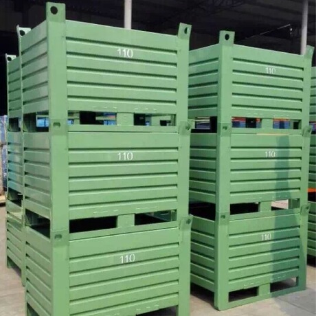 钢制料箱结构形式多样,使用便捷灵活,承载能力强,料箱通常可互相堆垛,也可配合叉车在区域内流动,亦可在底部安装脚轮,还可以配合航吊使共起升、位移、下落,钢制料箱可分为波纹板料箱、吊挂式料箱、网格式料箱、折叠网格式料箱等。