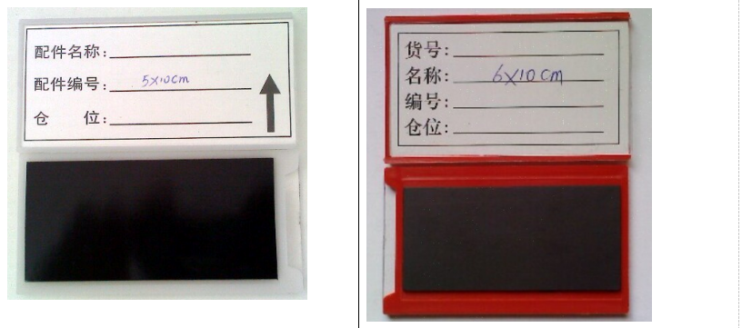 增加:磁扣计数标签磁性标签可以直接吸附在货架、书架、文档架上,方便仓库、图书馆、资料馆管理的资料直观化,直接提升管理工作的效率。它的卡面信息可根据使用者的实际需要填写以及随时更换,因为是依靠磁面吸附,所以其位置可随意变动,方便快捷。