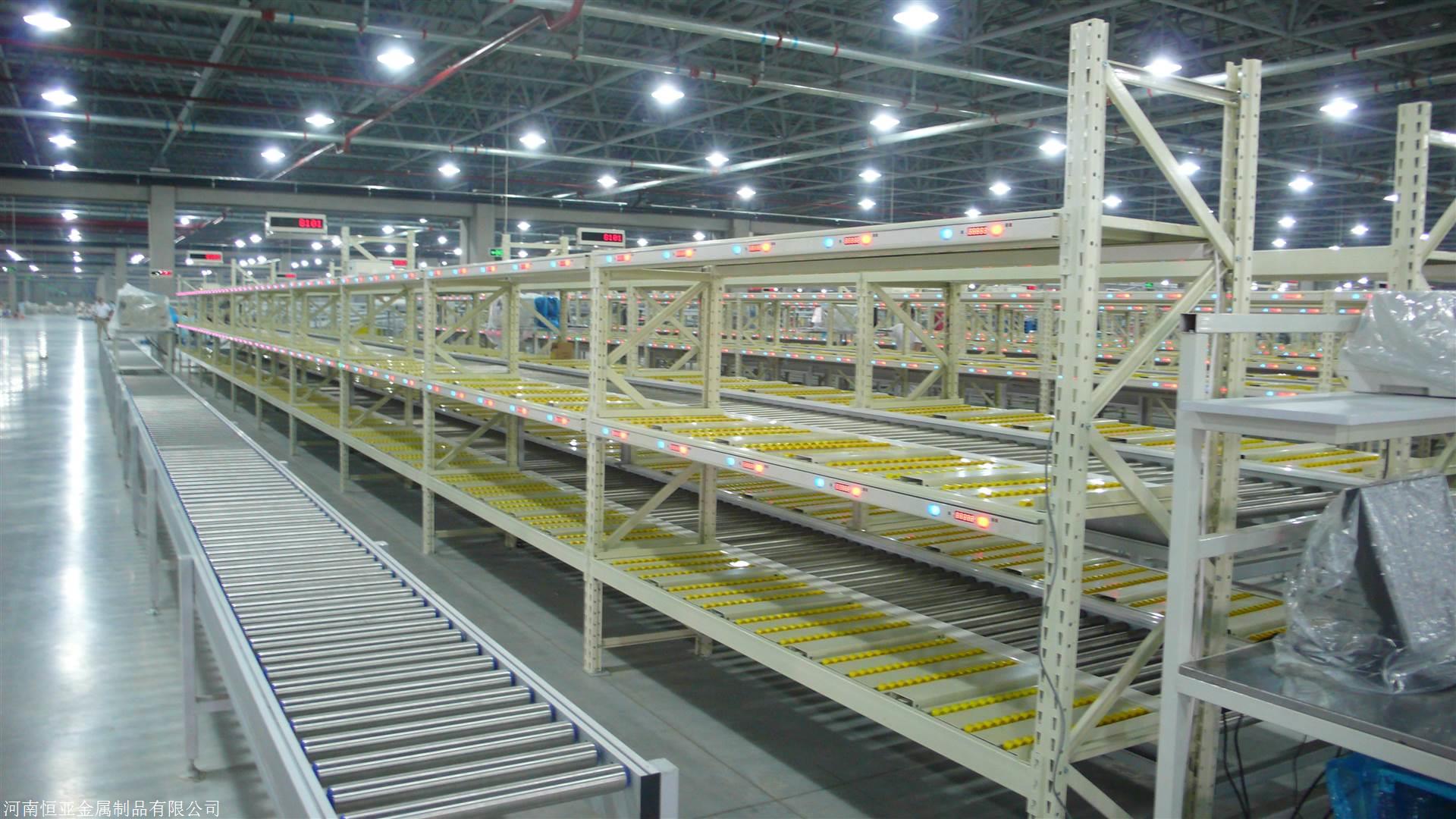 1、采用铝合金、钣金滚轮式流利条,利用货物自重实现先进先出。
