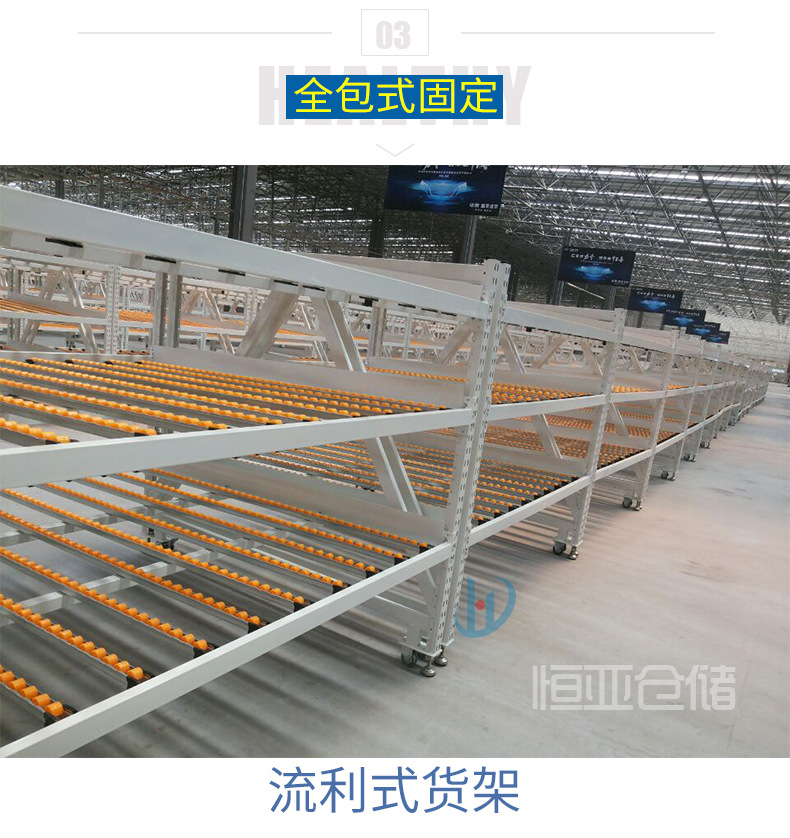 概念简介:流利式货架又称滑移式货架,辊轮式货架,采用辊轮铝合金、钣金等流利条,利用货物台架的自重,从一边通道存货,另一边通道取货实现先进先,存储方便,以及一次补货多次取货。流利式货架存储效率高,适用大量货物的短期存储和拣选。可配合电子标签,实物的轻松管理,常用滑动窗口有周转箱,零件盒及纸箱等,适合大量货物的短期存储和拣选。广泛应用于配送中心、装配车间及出货频率较高的仓库。