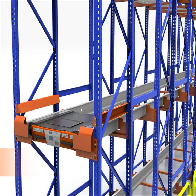 穿梭式货架在架子的深度方向上配备有穿梭小车导向器。库存时,只需将货物放在导轨的前面即可。导轨上的无线远程穿梭机将自动将托盘运送到导轨上并将其放在导轨的深处。提货时,穿梭机会将托盘放到导轨和叉车的前端可以删除它。穿梭车机架可以实现先进先出或先进先出。