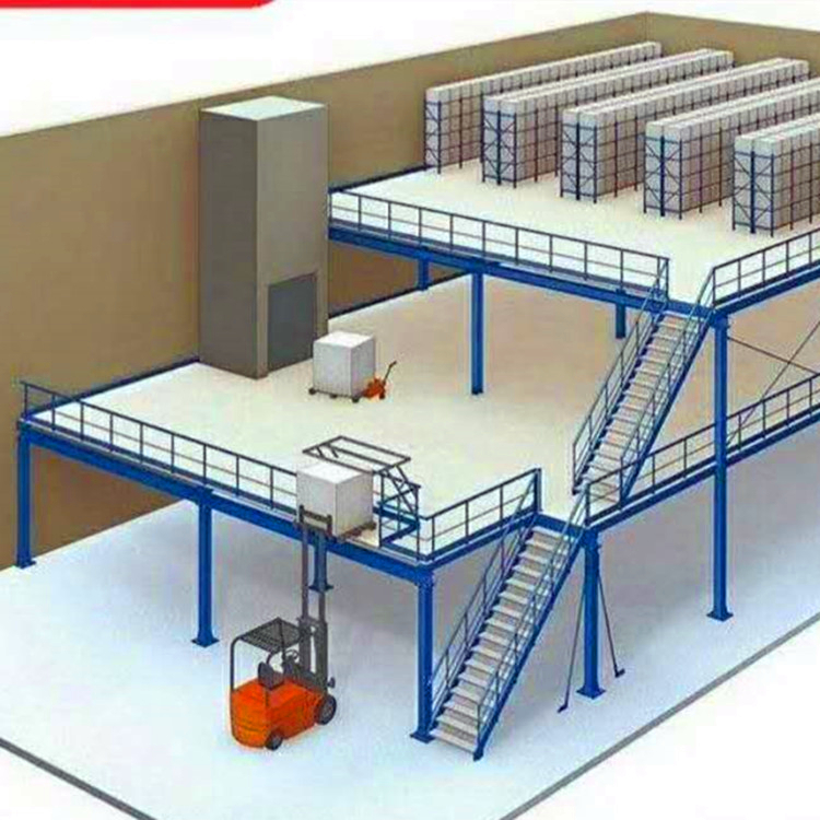 组合钢平台是把空间作双层以上活用之设计组合,在厂房地板面积有限的情形下,可作立体的规划,有效地充分利用空间。
