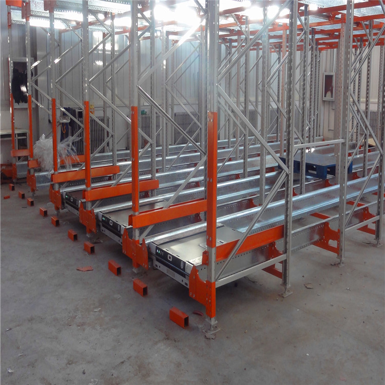 穿梭式货架在架子的深度方向上配备有穿梭小车导向器。库存时,只需将货物放在导轨的前面即可。导轨上的无线远程穿梭机将自动将托盘运送到导轨上并将其放在导轨的深处。提货时,穿梭机会将托盘放到导轨和叉车的前端可以删除它。穿梭车机架可以实现先进先出或先进先出。