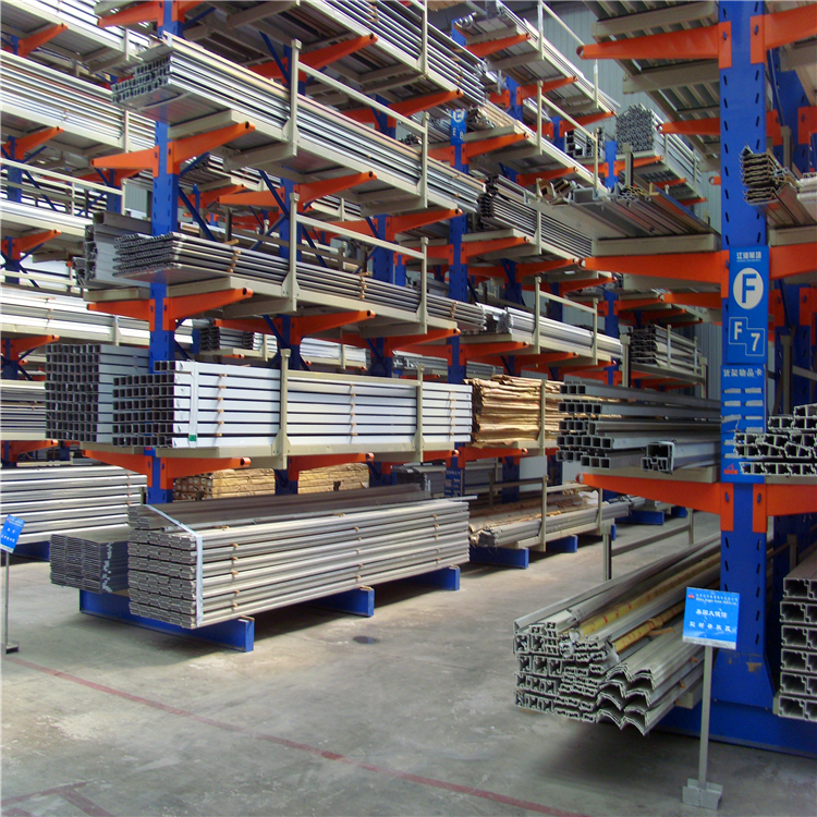 悬臂式货架适用于存放长物料、环型物料、板材、管材及不规则货物。悬臂式货架立柱多采用H型钢或冷轧型钢,悬臂采用方管、冷轧型钢或H型钢,悬臂与立柱间采用插接式或螺栓连接式,底座与立柱间采用螺栓连接式,底座采用冷轧型钢或H型钢。货物存取由叉车、行车或人工进行。货架高度通常在2.5米以内(如由叉车存取货则可高达6米),悬臂长度在1.5米以内,每臂载重通常在1000KG以内。此类货架多用于机械制造行业和建材超市等。加了搁板后,特别适合空间小,高度低的库房,管理方便,视野宽阔,与普通搁板式货架相比,利用率更高;根据承载能力可分为轻量型、中量型、重量型三种。