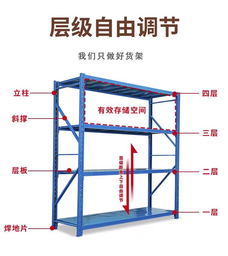 3)重型搁板式货架:又称重型层板货架或者重型货架。