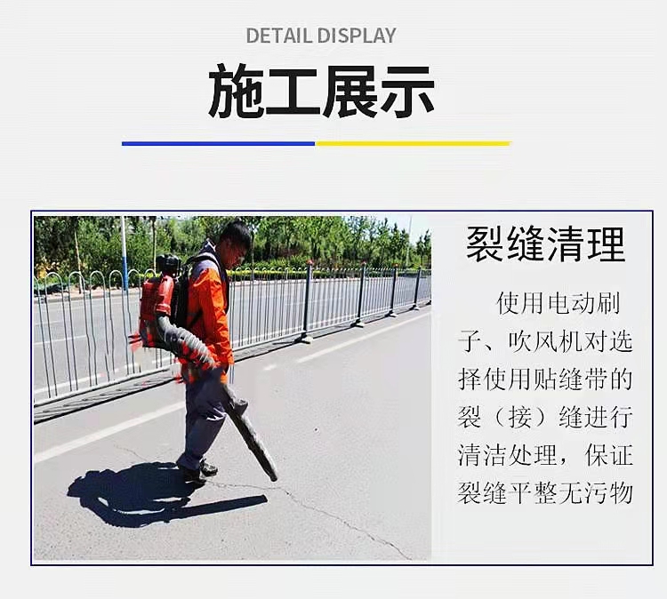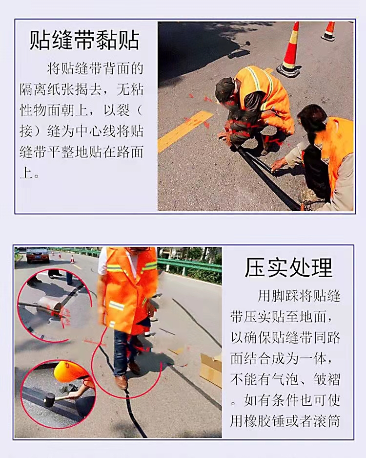 (3)建议在铺设高分子抗裂贴后用胶轮滚筒进行滚压2-3遍。