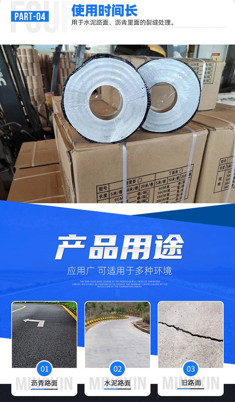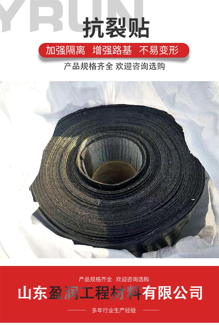 防裂贴(又称抗裂贴)是由沥青基的高分子聚合物、高强抗拉胎基、耐高温并与沥青相容的高强织物复合而成。该产品具有自粘性,施工方便,直接粘贴裂缝处。这种结构是将现在公路上防止裂缝几种措施的有机综合应用。